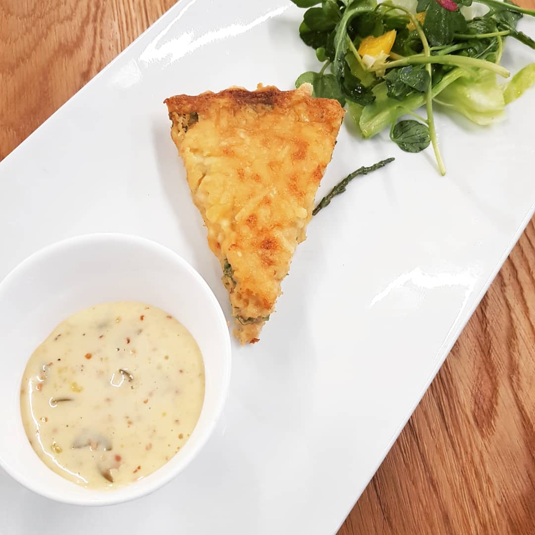 - Starter: Devon crab tart, served with samphire and citrus salad and caper berry mayonnaise